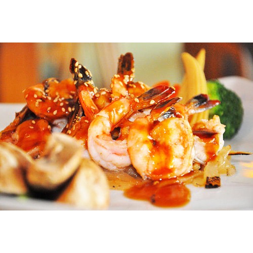 shrimp and broccoli grilled with homemade teriyaki sauce.