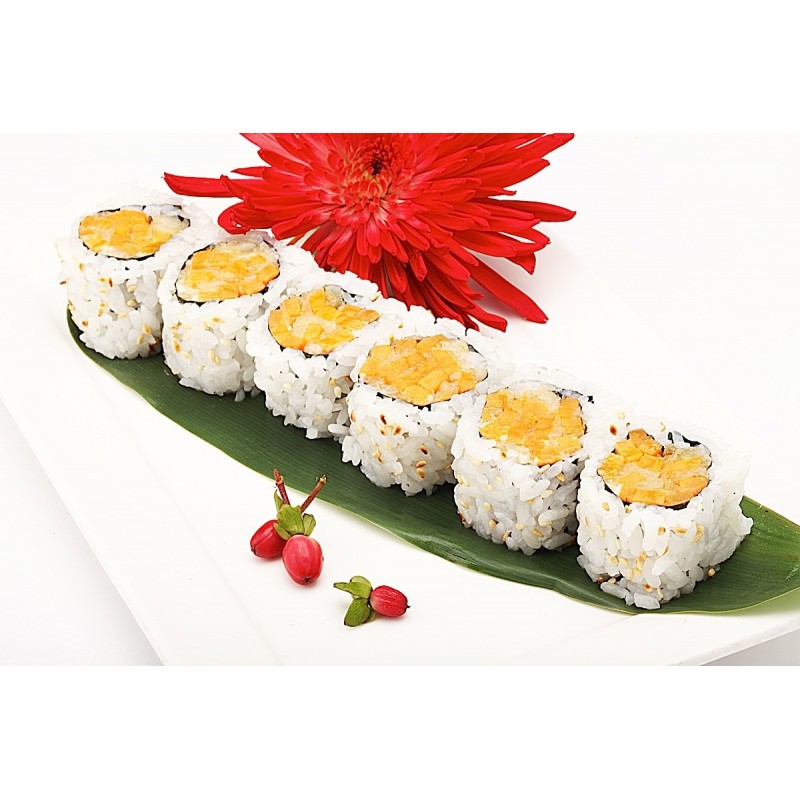 fried sweet potato rolled with eel sauce & shrimp sauce