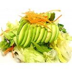 house salad with thin sliced avocado & cucumber served with homemade ginger dressing